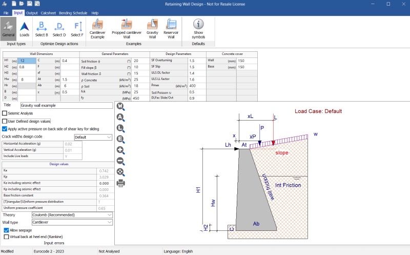 Το PROKON Retaining Wall υπολογίζει με ακρίβεια τα φορτία από τη γη, τις σεισμικές δυνάμεις και τις επιπτώσεις των υπόγειων υδάτων, διασφαλίζοντας πλήρη συμμόρφωση με τους διεθνείς και τοπικούς κανονισμούς (π.χ., Eurocode).