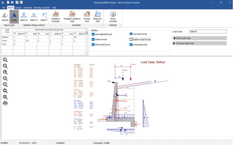 Το PROKON Retaining Wall επιτρέπει την εύκολη εισαγωγή και προσαρμογή φορτίων, όπως φορτία από γη, στατικά ή δυναμικά φορτία, και φορτία από υπόγεια ύδατα, δίνοντας τη δυνατότητα για ένα πιο ευέλικτο και ακριβές μοντέλο.