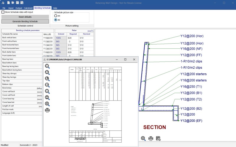 Το λογισμικό εκτελεί αναλυτική διαστασιολόγηση του απαιτούμενου οπλισμού για τοίχους αντιστήριξης, παρέχοντας λεπτομερείς υπολογισμούς και αναφορές για τον οπλισμό, με βάση τα φορτία και τις συνθήκες του έργου.