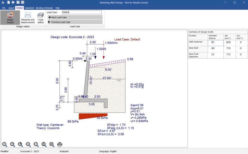 Το λογισμικό εκτελεί αυτόματους ελέγχους ευστάθειας (ολίσθηση, ανατροπή, φέρουσα ικανότητα εδάφους), καθώς και αναλυτική διαστασιολόγηση του απαιτούμενου οπλισμού, παρέχοντας σαφή και τεκμηριωμένα αποτελέσματα. Παράλληλα, προσφέρει φιλικό περιβάλλον εργασίας, γραφική απεικόνιση της γεωμετρίας και των φορτίσεων, καθώς και αναλυτικές εκτυπώσεις υπολογισμών, διευκολύνοντας τον έλεγχο και την τεχνική τεκμηρίωση της μελέτης. Το PROKON Retaining Wall αποτελεί ιδανική λύση για ασφαλή, γρήγορη και αποδοτική μελέτη έργων αντιστήριξης σε κάθε τύπο τεχνικού έργου.